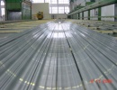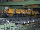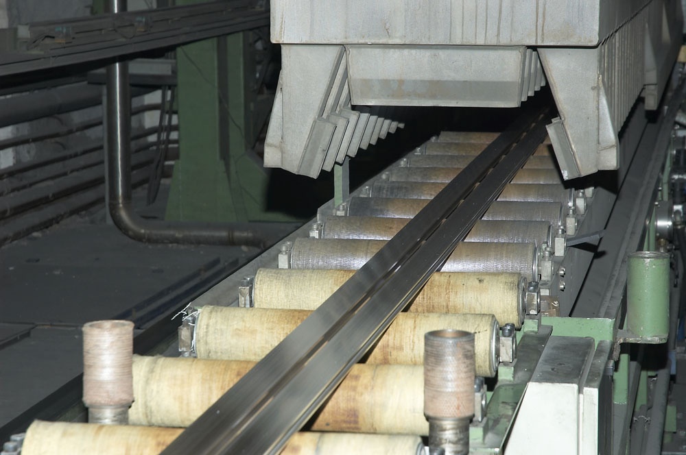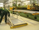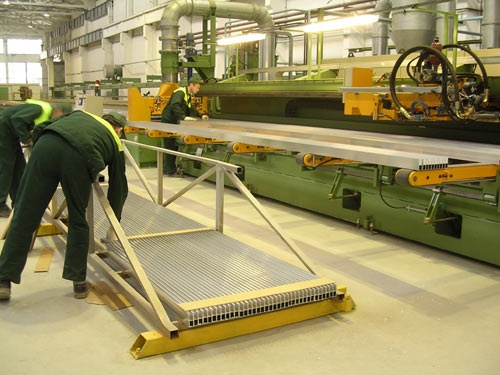 Фотогалерея цеха экструзииОсобенностью линии является двойная длина приемного стола и двойной пуллер, позволяющие сократить время холостого цикла и повысить производительность линии, а также устройство сбалансированного водно-воздушного охлаждения профиля и правильно-растяжное устройство повышенной мощности, позволяющие получать заданные механические свойства для сплавов различных марок и производить профили с большой площадью поперечного сечения. |