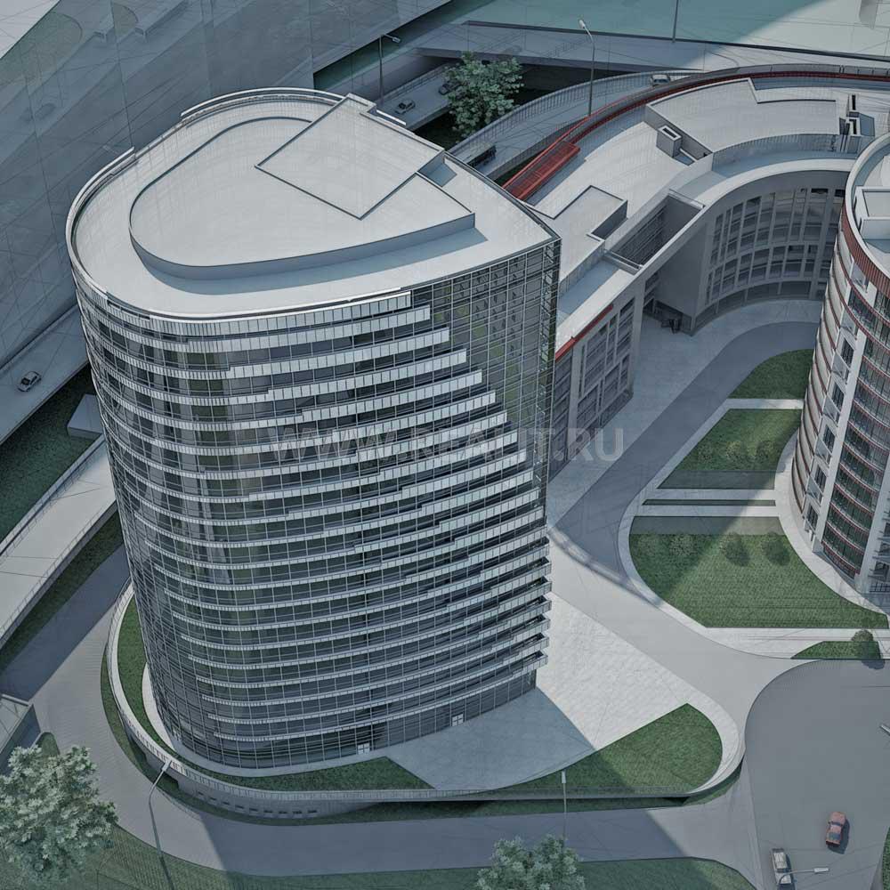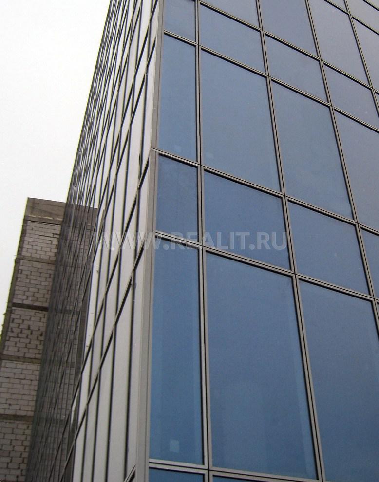 Еще одним объектом, для которого также была произведена адаптация серии элементного фасада системы РЕАЛИТ, стал многофункциональный комплекс на Поклонной горе. Специально для этого здания площадью остекления 15000 кв.м. был разработан узел сопряжения стоечно-ригельного фасада RF 50 (стойка RE 6010 на первых этажах здания, до 7 м) с элементным фасадом (все остальные этажи).
