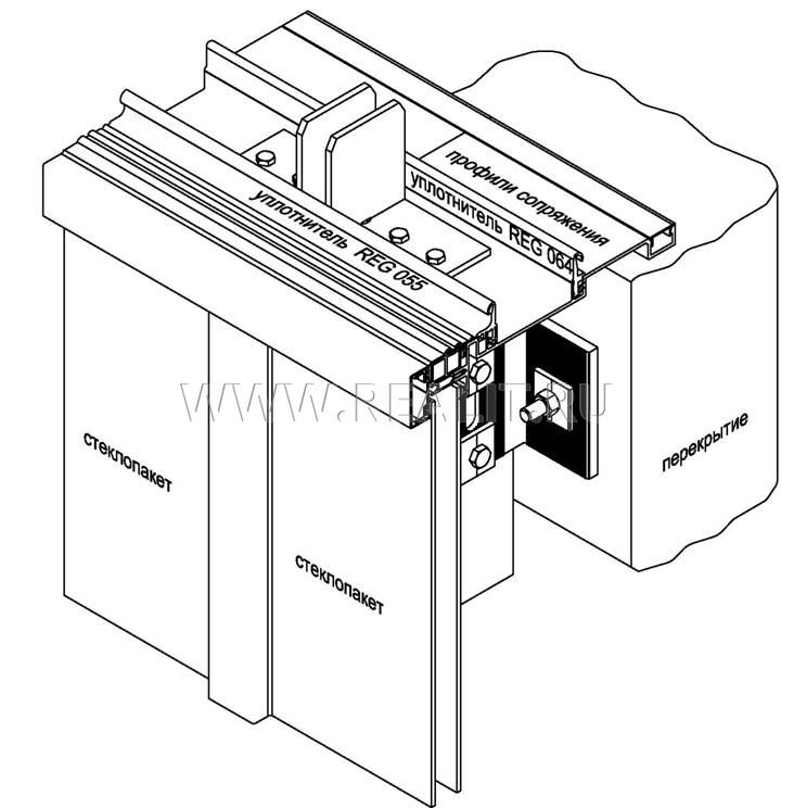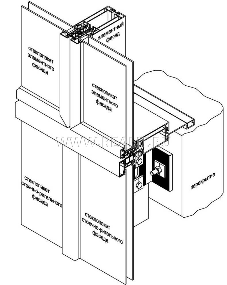 Конструкторское бюро завода «Реалит» также разрабатывает объектные решения для других серий собственной архитектурной системы. В частности, было предложено решение для объекта в Москве по сопряжению вентилируемого фасада и стоечно-ригельного фасада RF50. А для объекта в Белоруссии с радиусным фасадом было разработано решение на основе полуструктурного фасада RF 50 SSG системы РЕАЛИТ. Также для конкретных объектов предлагались решения по улучшению теплотехнических характеристик наших систем и подбор параметров для решения узлов примыкания. Особенно это касалось объектов в Республике Беларусь, где нормы сопротивления теплопередачи выше, чем в России. | |
